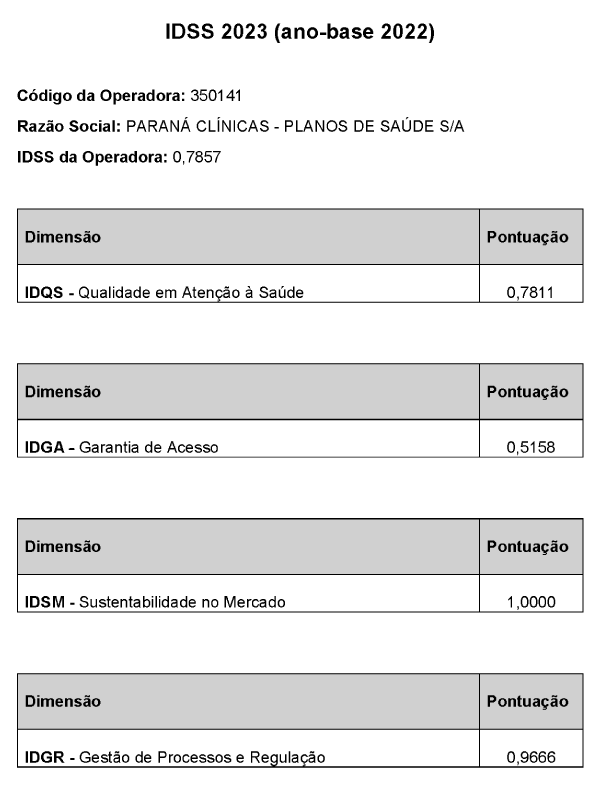 ÍNDICE DE DESEMPENHO DA SAÚDE SUPLEMENTAR – IDSS – 2023 (ANO-BASE 2022)