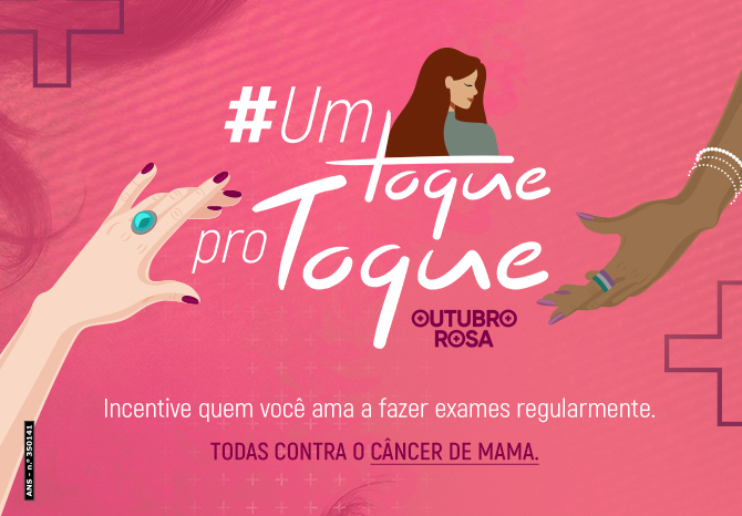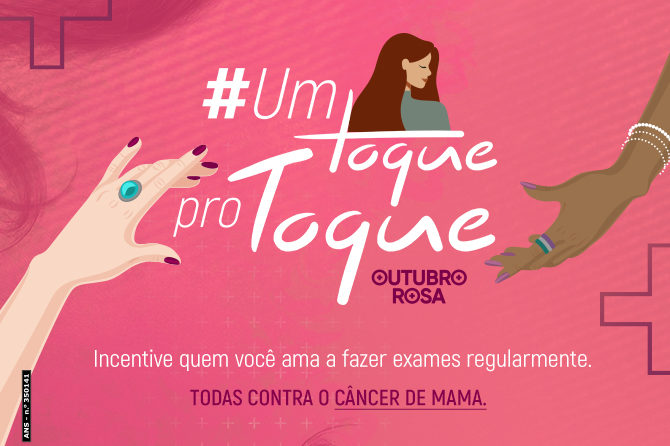 Juntas, somos mais fortes contra o câncer de mama. Por isso, nesse Outubro Rosa vamos dar um toque em quem a gente ama, incentivando a consultar o ginecologista e fazer exames regularmente. Se uma apoiar a outra, vamos vencer essa luta.