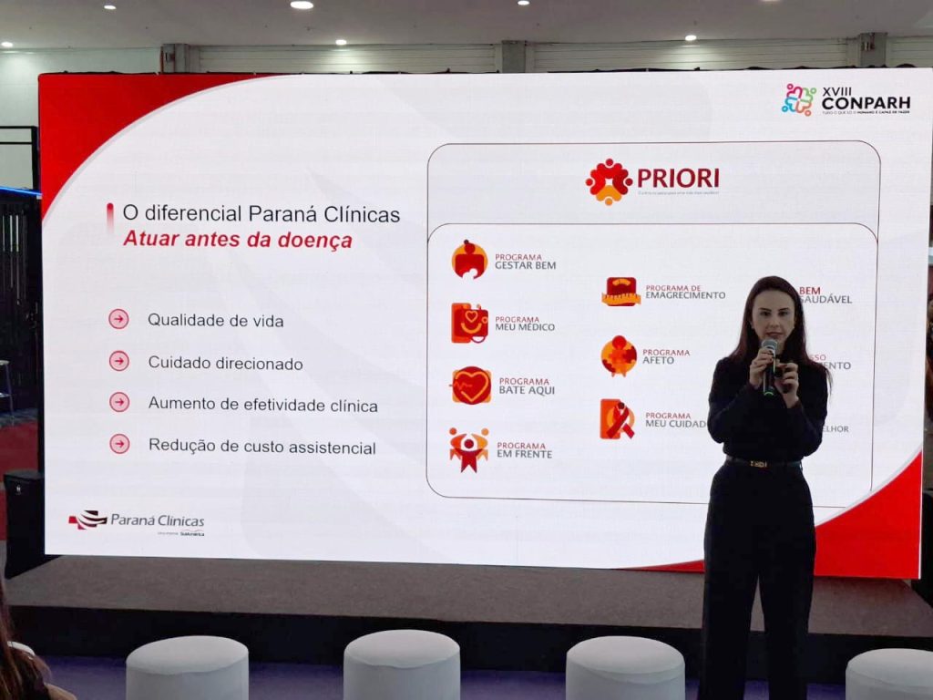 A gestora apresentou o Programa Priori, da Paraná Clínicas, como um exemplo de abordagem preventiva e assistencial de qualidade. Ela explicou que, ao focar na prevenção e no controle de custos de forma compartilhada com as empresas, é possível diminuir gradualmente a sinistralidade, evitar surpresas no reajuste e, consequentemente, reduzir o absenteísmo e aumentar a performance do colaborador. “Nosso principal objetivo é garantir a qualidade assistencial para os pacientes, mas a gente sabe também do nosso compromisso em controlar e dividir o controle de custo junto com a empresa. Quando a performance aumenta, significa que o absenteísmo diminuiu e a qualidade de vida desse paciente aumentou,” concluiu.